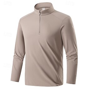 男性用 ハイキング シャツ ハイキングトップ クォータージップシャツ 長袖 スタンド トップス アウトドア UVサンプロテクション 速乾性 高通気性 ナイロン ダークグレー ブラック ライトグレー テニス ゴルフ ランニング