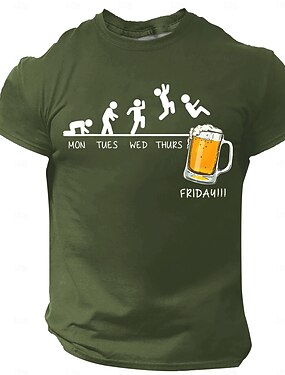 ビール好きのための男性用ショートスリーブグラフィックTシャツ - おかしな仕事週から金曜日のユーモアTシャツ
