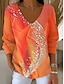 女性用 ニット プルオーバー ファッション ストリートファッション カジュアル フラワー グラフィック Vネック 特大の ニット 長袖 レギュラートップス ニット アウトドア 日常 オレンジ 春 秋