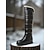女性用パンクニーハイライディングブーツ - ハロウィン、フェスティバル、ストリートウェアスタイルに最適な、リベット付きのフェイクレザーバックルストラップゴシックブーツ