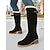 ラインストーンのタッセル装飾とチャンキーヒールを備えた女性用のニーハイブラックフェイクスエードブーツ - 秋冬用のエレガントなファッションブーツ