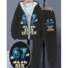 男女兼用 男の子 3D グラフィック 面白いスラング 67 パーカー&スウェットパンツセット スポーツスーツ ジャケット&パンツ 長袖 春 秋 ファッション カジュアル コンフォートシューズ 子供 4〜12年 ファスナー フード付き アウトドア バケーション スポーツ レギュラー