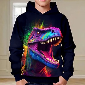 男の子 3D 恐竜 パーカー Pullover 長袖 3Dプリント 秋 冬 ファッション ストリートファッション クール 子供 3〜12年 4〜12年 アウトドア カジュアル 日常 レギュラー