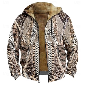 男性用 グラフィック ボヘミアンスタイル パーカー ジャケット ファッション エスニック フード付き アウトドア スポーツ・アウトドア お出かけ ライトブラウン 濃いオレンジ ポケット プリント フリース 冬 デザイナー
