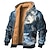 男性用 グラフィック パーカー ジャケット ファッション ストリートファッション フード付き アウトドア スポーツ・アウトドア お出かけ ブルー グレー ポケット プリント フリース 冬 デザイナー