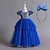 女の子のパーティードレス パーティー 結婚式 フォーマル プリンセス パッチワーク メッシュ 花柄 ノースリーブ クルーネック ブルー スカイブルー 4歳以上
