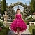 フラワーガールドレス 女の子 フォーマルドレス 結婚式の服装 パーティー 結婚式 フォーマル ファッション 愛らしい フォーマル パッチワーク メッシュ 純色 ノースリーブ クルーネック ピンク ルビーレッド 4年以上