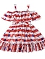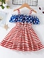 子供 女の子 アメリカ独立記念日 ドレス フラッグ A ラインドレス 膝上 ドレス 日常 パッチワーク コットン 半袖 かわいいスタイル ドレス 1〜5年 春 ブルー ワイン ルビーレッド