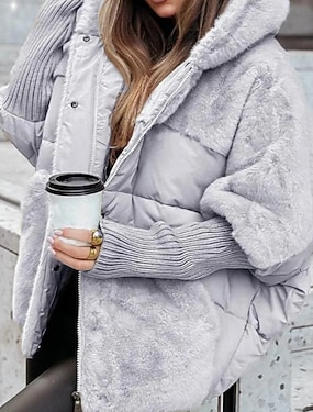 女性用 冬物コート パーカージャケット 保温 快適 パッチワーク ジッパー カジュアル カラーブロック バケーション デイリーウェア お出かけ 週末 レギュラー フード付き ルーズフィット 長袖 アウターウェア ブラック カーキ色 アプリコット 秋 冬