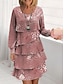 女性用 ミニドレス A ラインドレス レイヤードワンピース スタイリッシュ カジュアル フォーマル レギュラー グラフィック リーフ柄 長袖 クルーネック スクープネック ライトグリーン ピンク パープル 夏 春 秋 冬