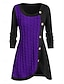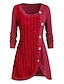女性用 ニット カジュアル ソフト ピュアカラー リブ クルーネック ボタン ニット 長袖 ロングトップス ニット アウトドア 日常 週末 ピンク ルビーレッド 秋 冬