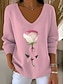 女性用 ニット カジュアル ソフト フラワー グラフィック リブ Vネック ニット プリント 長袖 レギュラートップス ニット アウトドア 日常 週末 ピンク 秋 冬
