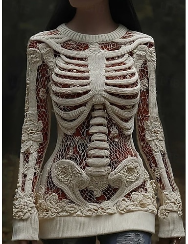 女性用 ニット かわいいスタイル ストリートファッション カジュアル グラフィック スケルトン クルーネック パッチワーク ニット 長袖 レギュラートップス ニット ハロウィーン ピンク 秋 冬
