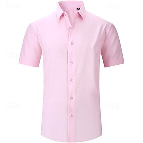 男性用 シャツ ドレスシャツ ボタンアップシャツ 純色 結婚式 パーティー ブラック ホワイト ピンク ワイン 半袖 ラペル 夏 衣類 ボタン