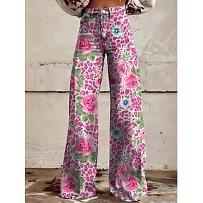 女性用 ワイドレッグ チノパン ファッション ストリートファッション 全長 ハイウエスト フラワー ポケット 弾性ウエストバンド プリント 快適 ソフト マイクロエラスティック アウトドア ストリート ピンク 春 & 秋 レギュラー