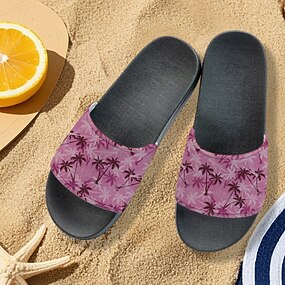 ユニセックスのトロピカルサンセットビーチサンダル - 夏、プール、休暇にぴったりのヤシの木柄の鮮やかなビーチサンダル