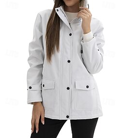 女性用 カジュアルジャケット 防水レインジャケット レインコート 防水 防風 ジッパー ポケット ファッション 屋外 平織り お出かけ 週末 ジッパ- レギュラー フード付き レギュラー 長袖 アウターウェア ブラック ホワイト ブルー 秋 冬