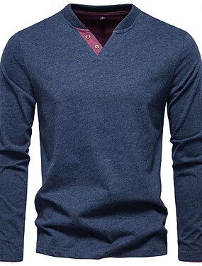 男性用 コットンシャツ 長袖 平織り クール 日常 カジュアル カラーブロック ボタン ヘンリー 学校 訓練 アウトドア オールシーズン カラーグレー ダークネイビー カーキ色 ヘンリーTシャツ