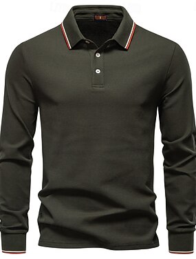 男性用 ポロ ワーク ビジネス 折襟 長袖 レジャー 快適 平織り カラーブロック 平織り オールシーズン レギュラー ロビンエッグブルー ブラック ホワイト ダークネイビー ライトグレー アーミーグリーン ポロ