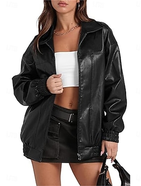 女性用 レザージャケット カジュアルジャケット アウトドア ストリート デイリーウェア 秋 冬 レギュラー コート レギュラー 保温 高通気性 スタイリッシュ カジュアル ジャケット 長袖 平織り ポケット付き フルジップ ブラック ピンク ブラウン