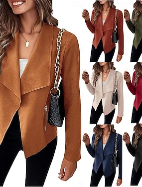 女性用 カジュアルジャケット 快適 高通気性 ジッパー ポケット カジュアル 平織り バケーション ストリート カジュアル デイリーウェア ジッパ- ショート 折襟 レギュラー 長袖 アウターウェア ブラック ネイビーブルー ブラウン 春 秋
