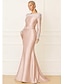 トランペット/マーメイド フロア丈 卒業ドレス イブニングドレス ボールガウン フォーマルドレス エレガント カラーブロック 半袖 ワンショルダー フォーマル 結婚式 シャンパンマザーオブブライドドレス サテン とともに スリット 刺繍 アップリケ