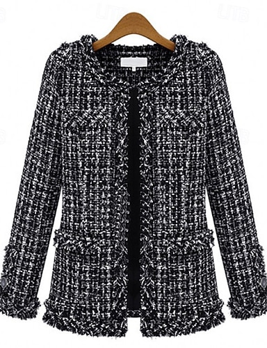 女性用 ブレザー 保温 快適 ポケット ボタン ファッション チェック アウトドア 祝日 シングルブレスト レギュラー 折襟 レギュラー 長袖 アウターウェア ブラック 秋 冬