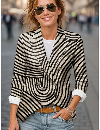 女性用 ブレザー 快適 高通気性 ポケット ボタン プリント ファッション カジュアル 幾何学模様 オフィス ストリート カジュアル デイリーウェア ダブルブレスト レギュラー ノッチドラペル レギュラー 長袖 アウターウェア ブルー パープル グリーン 春 秋