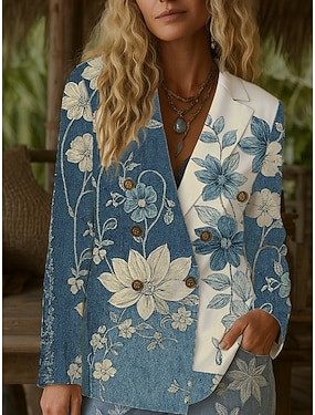 女性用 ブレザー 保温 快適 ボタン ヴィンテージ ファッション クラシック 近代の フラワー バケーション 家 カジュアル 日常 ダブルブレスト レギュラー ノッチドラペル レギュラー 長袖 アウターウェア ブルー パープル グリーン 春 秋