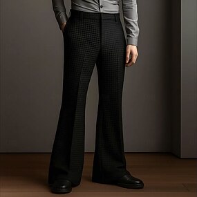 男性用 フレアパンツ ベルボトム ズボン スーツ スーツパンツ ポケット 平織り 履き心地よい ソフト 全長 アウトドア カジュアル 日常 旅行度假风 ファッション ブラック ホワイト 伸縮性なし