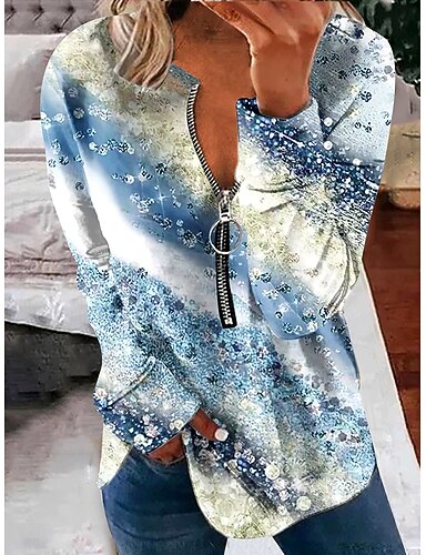 女性用 プルオーバースウェットシャツ ジップアップスウェットシャツ グラフィック 波点 ストライプ ファッション カジュアル 長袖 クルーネック レギュラートップス ストリート 日常着 ジッパー プリント ブルー 春 秋 冬