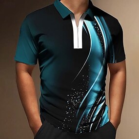 男性用 波点 ジップポロシャツ ゴルフシャツ 半袖 ポロシャツ 襟付きシャツ ビジネスカジュアル 作業服 フォーマルウェア フェスティバルウェア 3Dプリント クォータージップポロ ブラック ネイビーブルー ダークグリーン