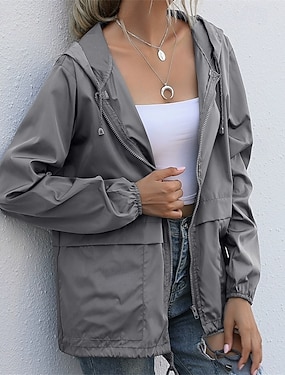 女性用 カジュアルジャケット 防水レインジャケット レインコート 防水 防風 ジッパー ポケット ファッション 屋外 平織り お出かけ 週末 ジッパ- レギュラー フード付き レギュラー 長袖 アウターウェア ブラック バーガンディー グリーン 秋 冬