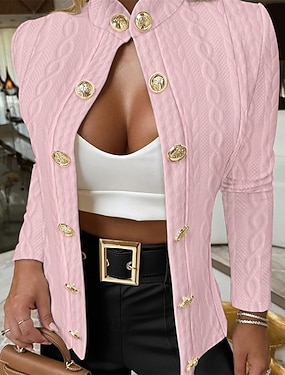 女性用 カジュアルジャケット 快適 高通気性 ポケット エレガント カジュアル 幾何学模様 バケーション ストリート カジュアル デイリーウェア シングルブレスト ショート レギュラー 折襟 レギュラー 長袖 アウターウェア ブラック ホワイト ピンク 春 秋