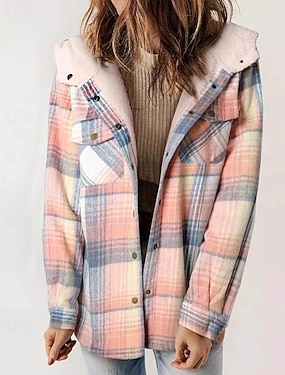 女性用 カジュアルジャケット アウトドア ストリート デイリーウェア 秋 冬 レギュラー コート レギュラー 保温 高通気性 スタイリッシュ カジュアル ジャケット 長袖 ストライプとチェック柄 ポケット付き プリント ルビーレッド フクシャ オレンジ
