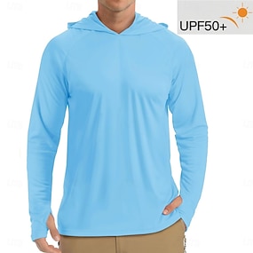男性用 Tシャツ 日焼け止めTシャツ パーカー 長袖 パーカー 夏 春 純色 クラシック フード付き アウトドア スポーツ フィッシング ライトブルー ブラック ホワイト メンズトップTシャツ