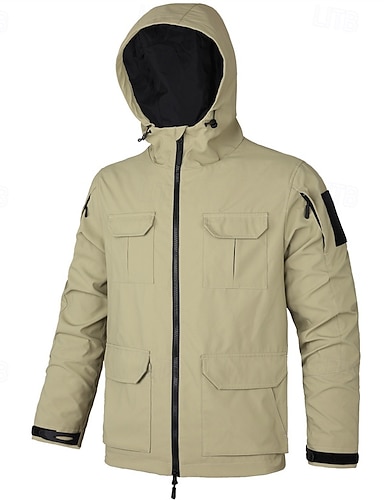 男性用 アウトドアジャケット ハイキング ジャケット タクティカルジャケット アウトドア 防雨 ウィンドブレーカー フリース 冬 秋 純色 トロピカル風 ミリタリー レギュラー ブラック グリーン カーキ色 ダック ジャケット
