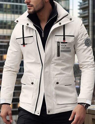 男性用 冬物ジャケット カジュアルジャケット アウトドア デイリーウェア 防風 ウォーム ポケット 秋 冬 レタード ファッション ストリートファッション フード付き レギュラー ブラック ホワイト ワイン アーミーグリーン ジャケット