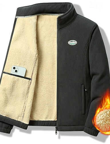 男性用 冬物ジャケット カジュアルジャケット 日常 バケーション 保温 ポケット フリース 秋冬 平織り ファッション ストリートファッション スタンド レギュラー ブラック ダック アーミーグリーン ダークブルー ジャケット