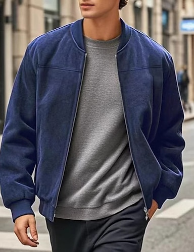 男性用 フェイクスエードジャケット カジュアルジャケット バケーション 日常 保温 ポケット 秋 冬 平織り ファッション クラシック スタンド レギュラー ブラック ネイビーブルー ブルー カーキ色 アーミーグリーン ジャケット