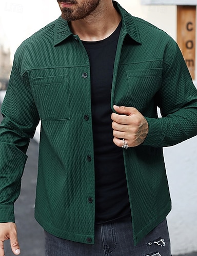男性用 軽量ジャケット カジュアルジャケット バケーション 日常 保温 ポケット ジャカード 春 秋 平織り ファッション クラシック ラペル レギュラー ダークグリーン ブラウン ジャケット