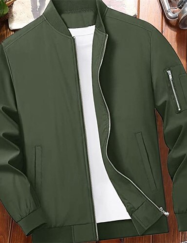 男性用 ボンバージャケット トランジションジャケット 日常 ウィンドブレーカー ポケット オールシーズン 平織り カジュアル スタンド レギュラー ブラック ブラウン アーミーグリーン ダークブルー ライトブルー ジャケット
