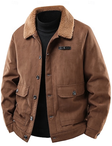 男性用 フェイクスエードジャケット ウィンドブレーカー ブラウン スエード ジャケット カジュアル カジュアル/普段着 ウィンドブレーカー ポケット フリースカラー 冬 春 & 秋 純色 ヴィンテージ ファッション シャツカラー レギュラー ブラック ブラウン グレー ジャケット