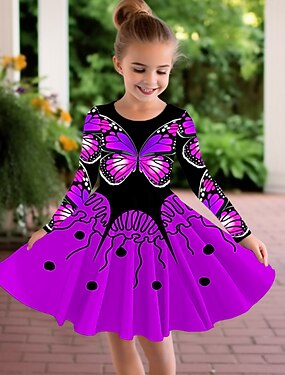 女子 3D グラフィック バタフライ ドレス 長袖 3Dプリント 夏 秋 スポーツ 日常 祝日 かわいいスタイル カジュアル 美しい 子供 3〜12年 カジュアルドレス A ラインドレス 膝上 ポリエステル レギュラー