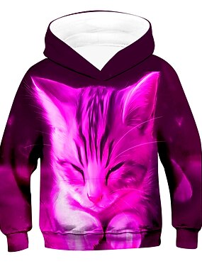 女の子 3D グラフィック 動物 猫 フーディーズ&スウェットシャツ 長袖 3Dプリント 活発的 子供