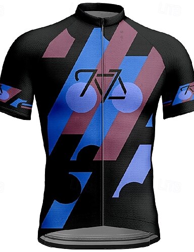 男性用 サイクリングジャージー グラフィック 半袖 バイク Tシャツ ジャージー 3つのリアポケット付き マウンテンサイクリング 速乾性 人間工学デザイン ウィッキング 高通気性 スポーツ ブルー パープル 衣類