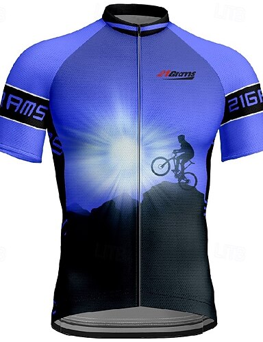 男性用 サイクリングジャージー グラフィック 半袖 バイク Tシャツ ジャージー 3つのリアポケット付き マウンテンサイクリング 速乾性 人間工学デザイン ウィッキング 高通気性 スポーツ ブルー パープル 衣類