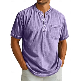 男性用 ヘンリーシャツ ティートップ 半袖 平織り レトリ/ヴィンテージ カジュアル ボタンアップ 洗浄済み ヘンリー カジュアル 夏 ピンク ライトブルー パープル ヘンリーTシャツ