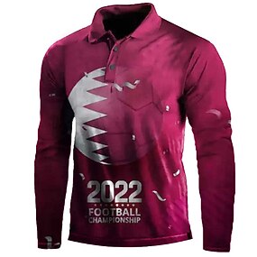 男性用 スポーツポロシャツ ゴルフシャツ 長袖 ポロシャツ 襟付きシャツ カジュアル スポーツウェア バケーションウェア 3Dプリント ボタン 赤、緑 ホワイト ルビーレッド