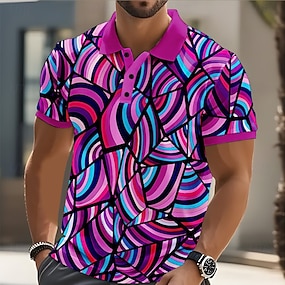 男性用 幾何学的な ポロ 半袖 ポロシャツ 襟付きシャツ カジュアル ストリート アスレイジャー デイリーウェア 3Dプリント ボタン 夏 ピンク ブルー パープル